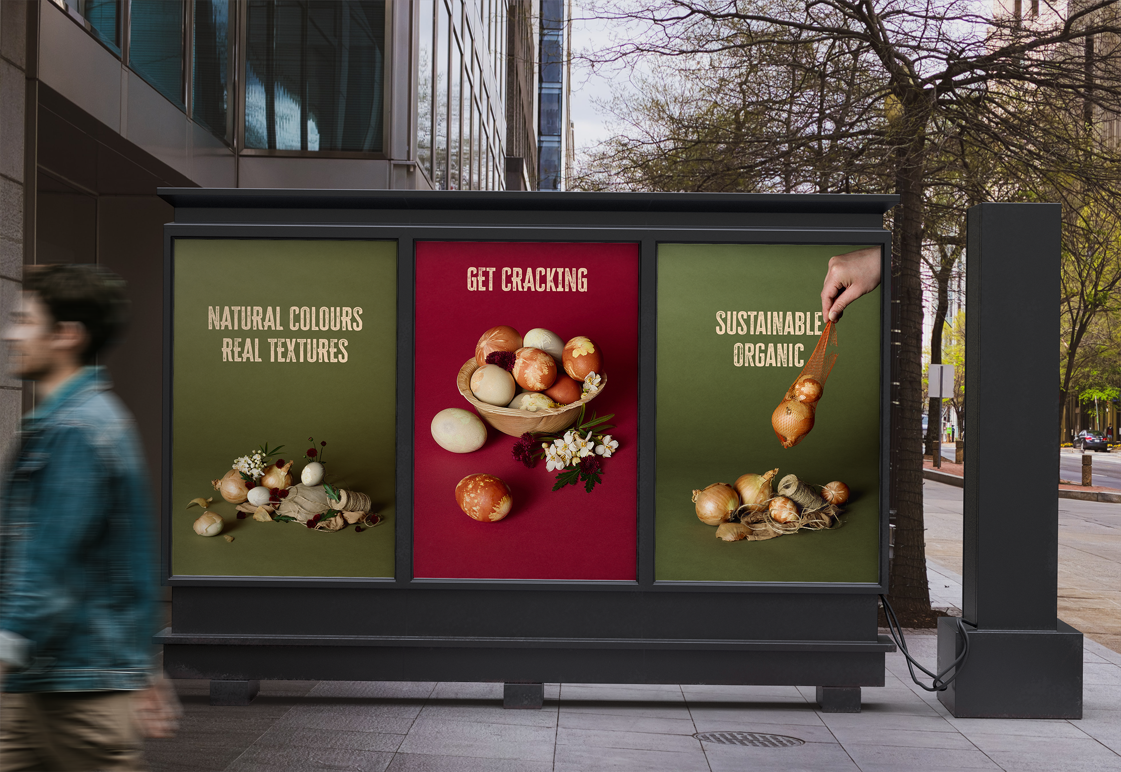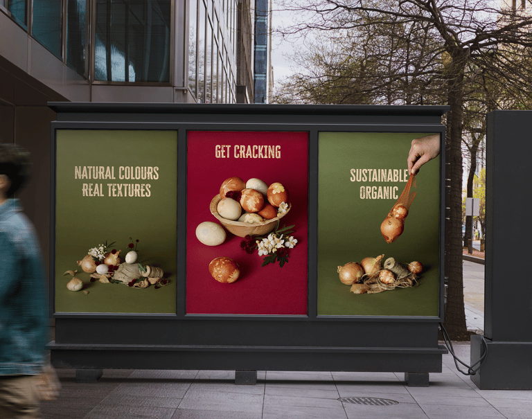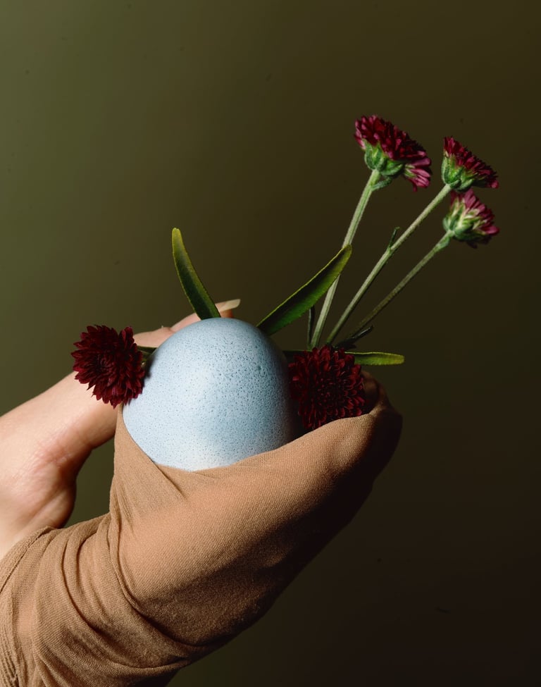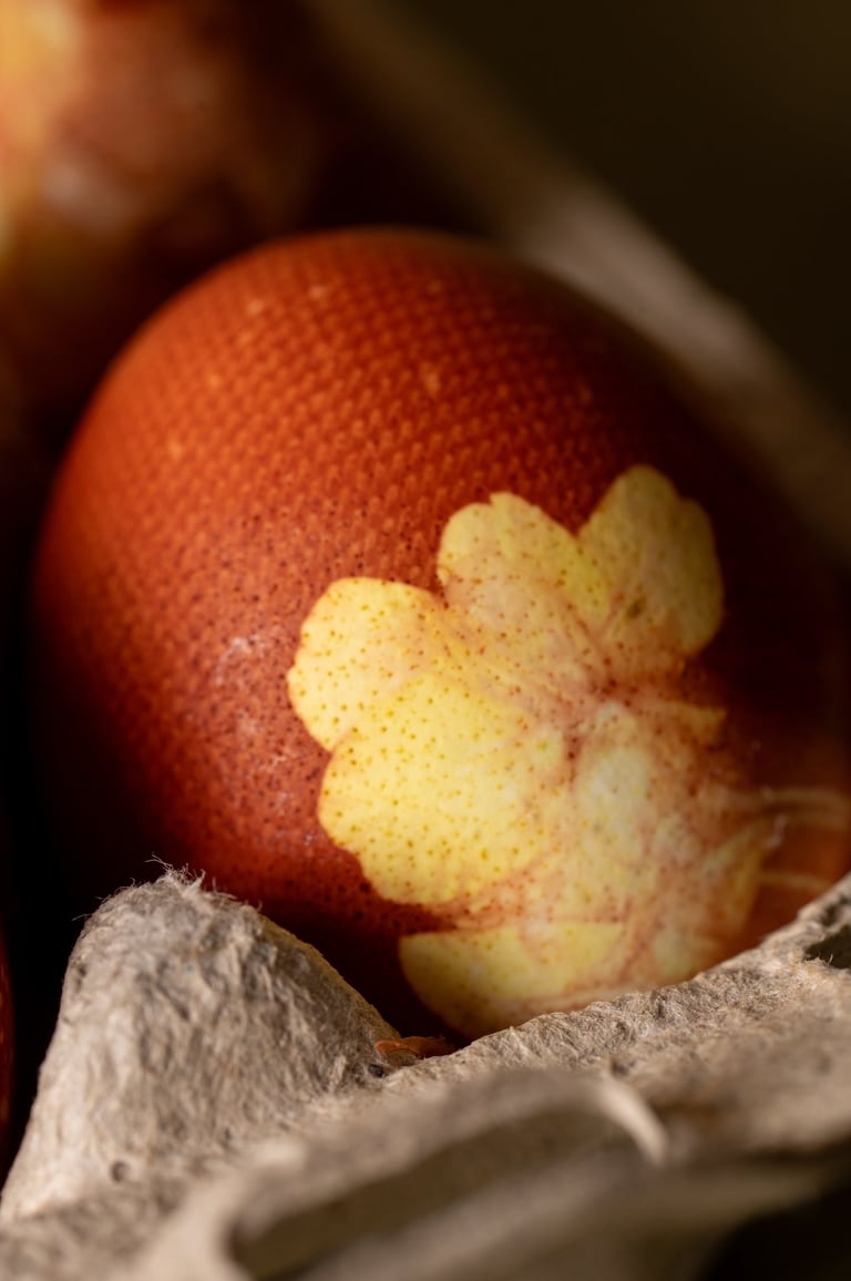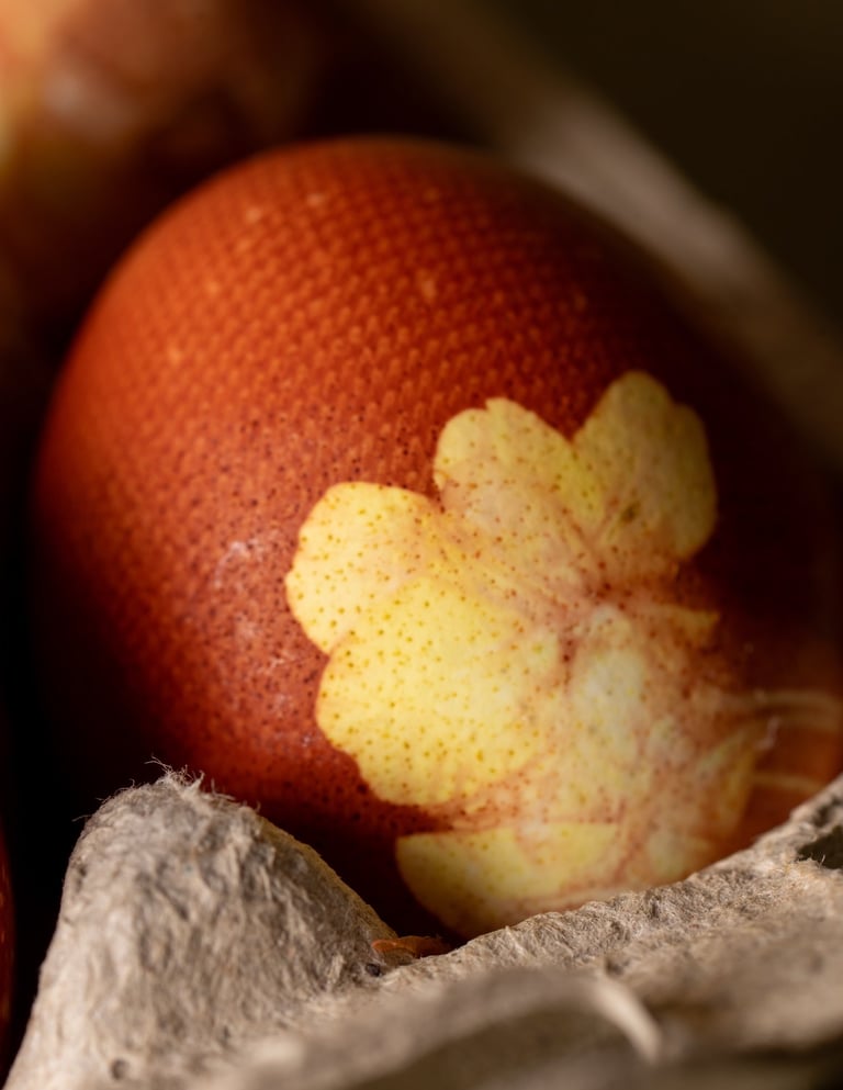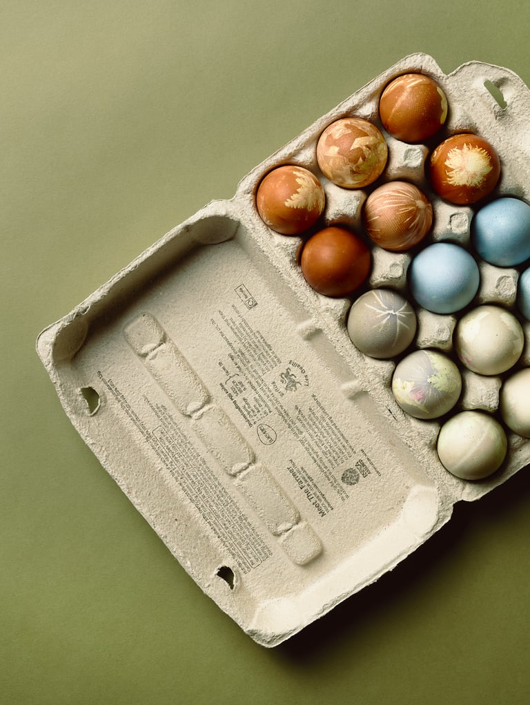 Design Concept: The shoot embraced a soft, natural aesthetic, calm, tactile, and rooted in nature. Collaborating with a photographer, we styled scenes with pastel tones, natural textures, and floral elements. Eggs were decorated using plant imprints and dyed with natural pigments from onion skins and red cabbage, emphasizing sustainability and craftsmanship.