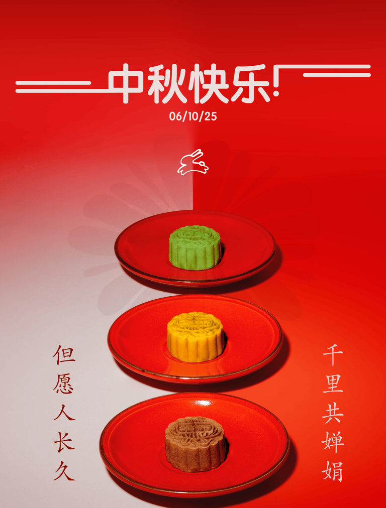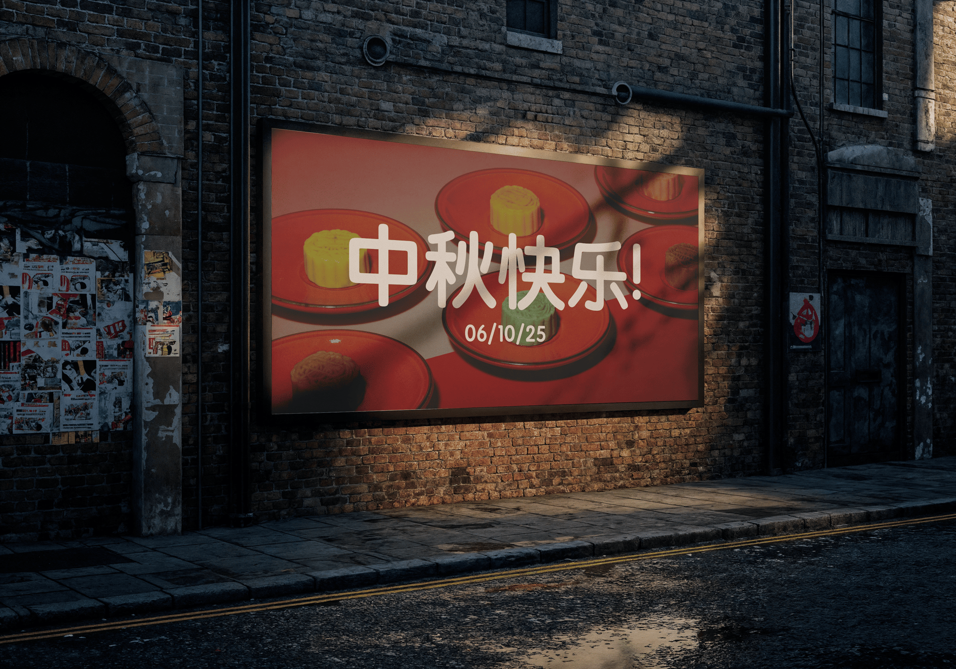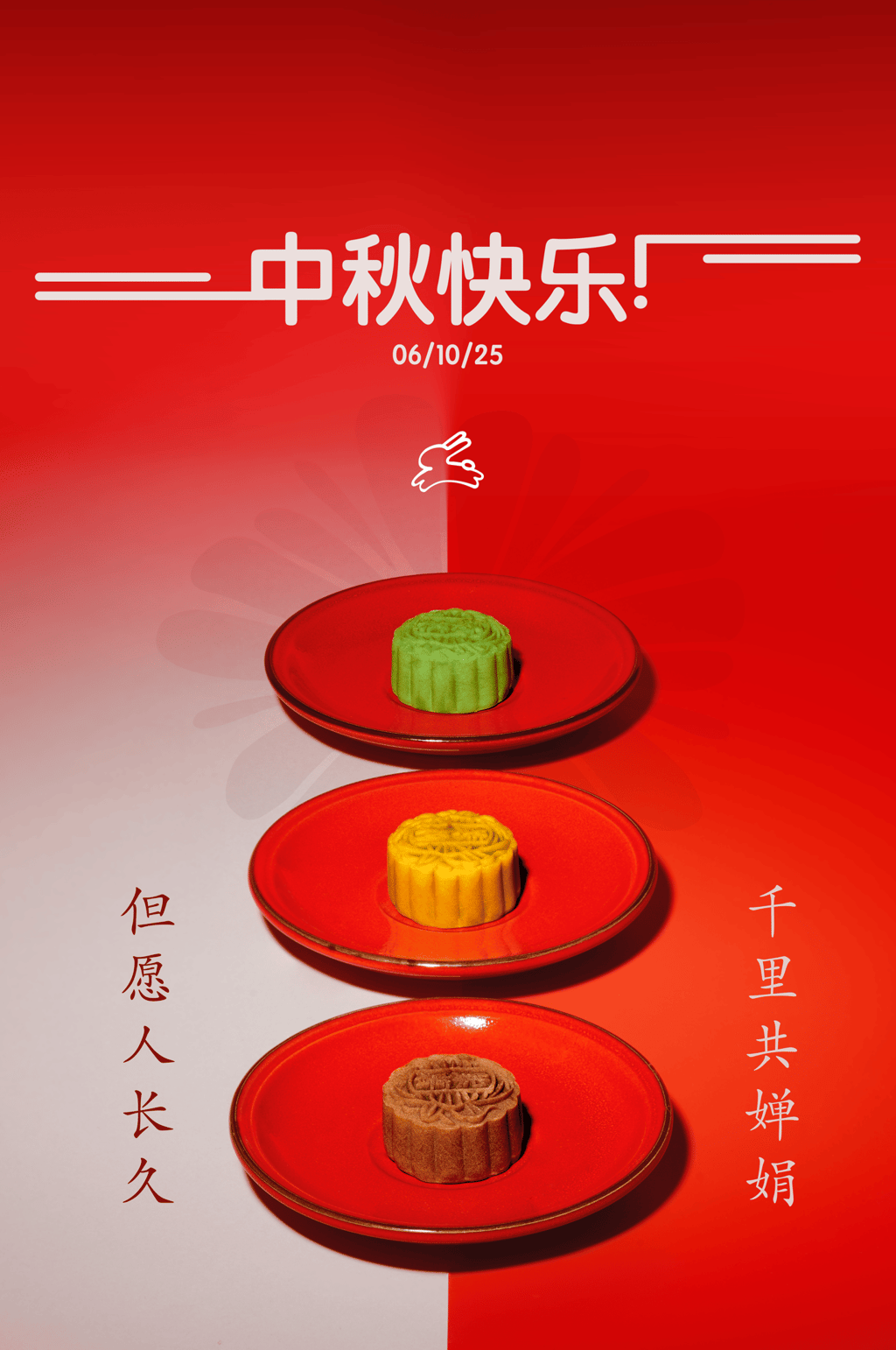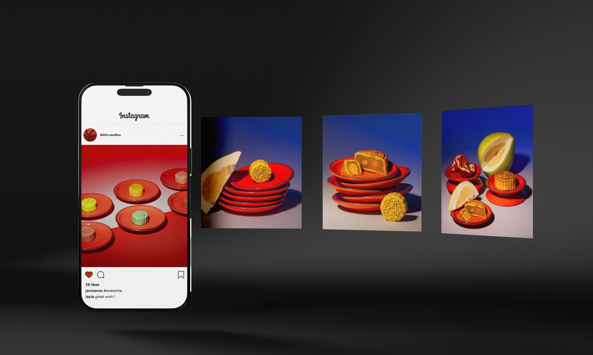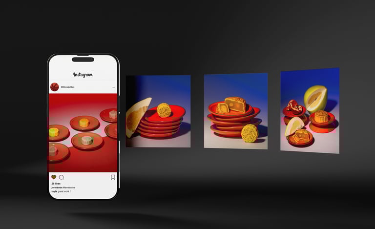 Design Concept: The concept reduces the festival to its most iconic symbols such as mooncakes and circular moon motifs. They are expressed through strong geometry and pure primary colors. By stripping each image down to essential shapes and shadows, the series transforms cultural rituals into striking, contemporary visual icons.