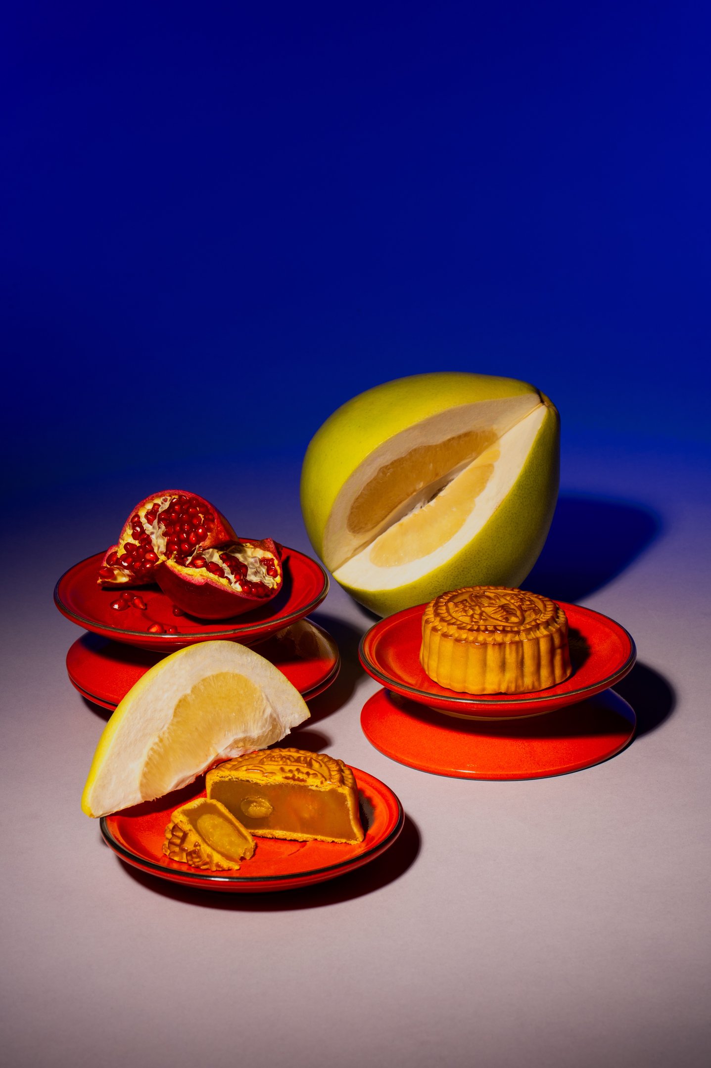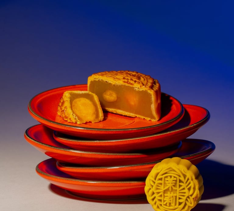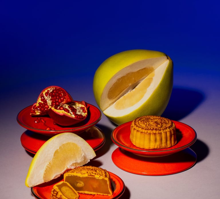 Create a bold, minimalist photo series capturing the Mooncake Festival through simplified forms and a strict palette of primary colors. The aim is to reinterpret traditional festival elements with a modern, graphic aesthetic that emphasizes shape, light and visual impact rather than ornate detail that can be showcased across social media.