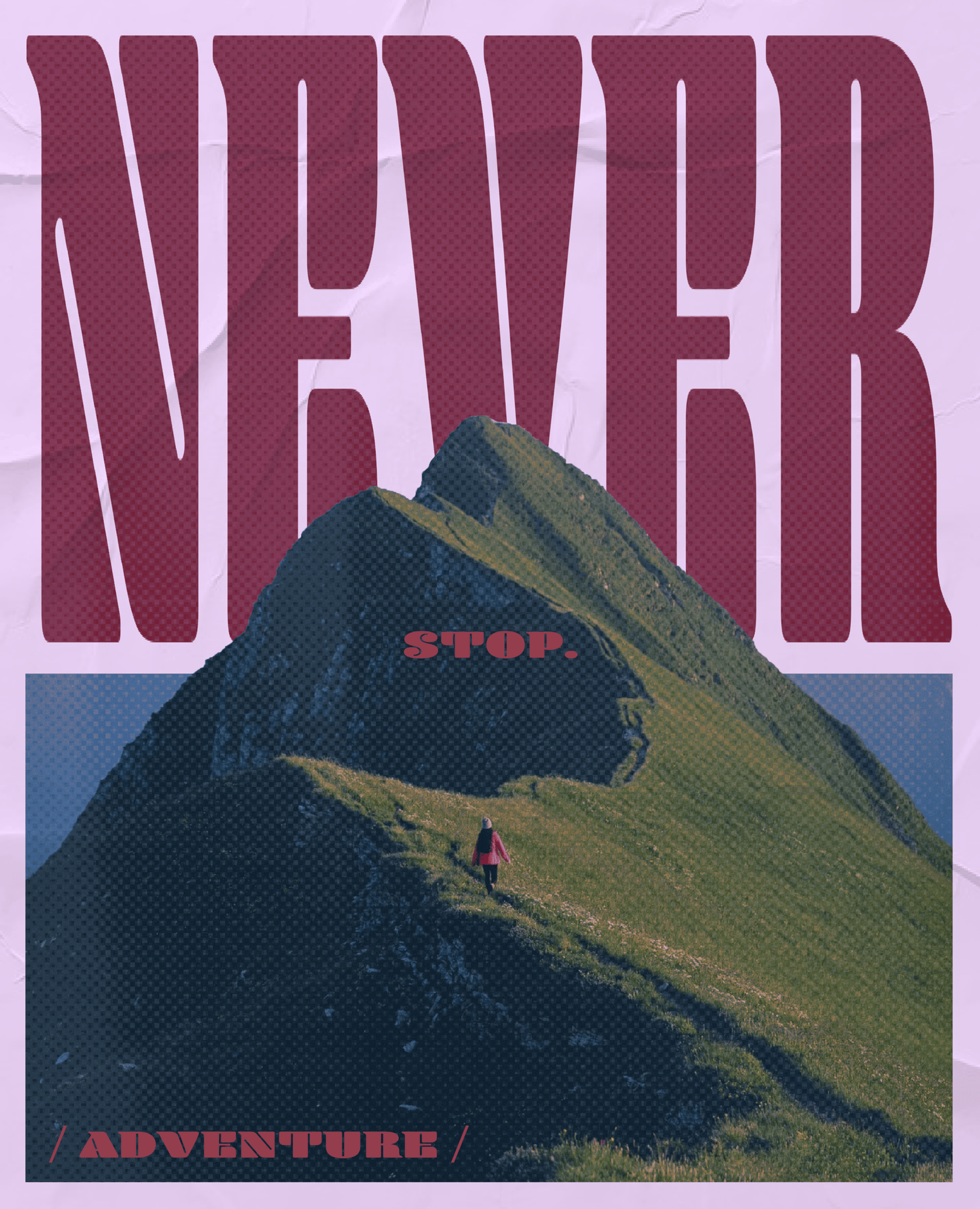 A striking poster series exploring diverse typographic and compositional approaches, this body of work reflects an iterative and experimental design process. Each poster begins with a conceptual starting point, often a word, theme, or visual reference which is then translated into multiple design directions. Through sketching, digital exploration, and typographic testing, I investigate how layout, hierarchy, and form can communicate meaning in distinct ways.